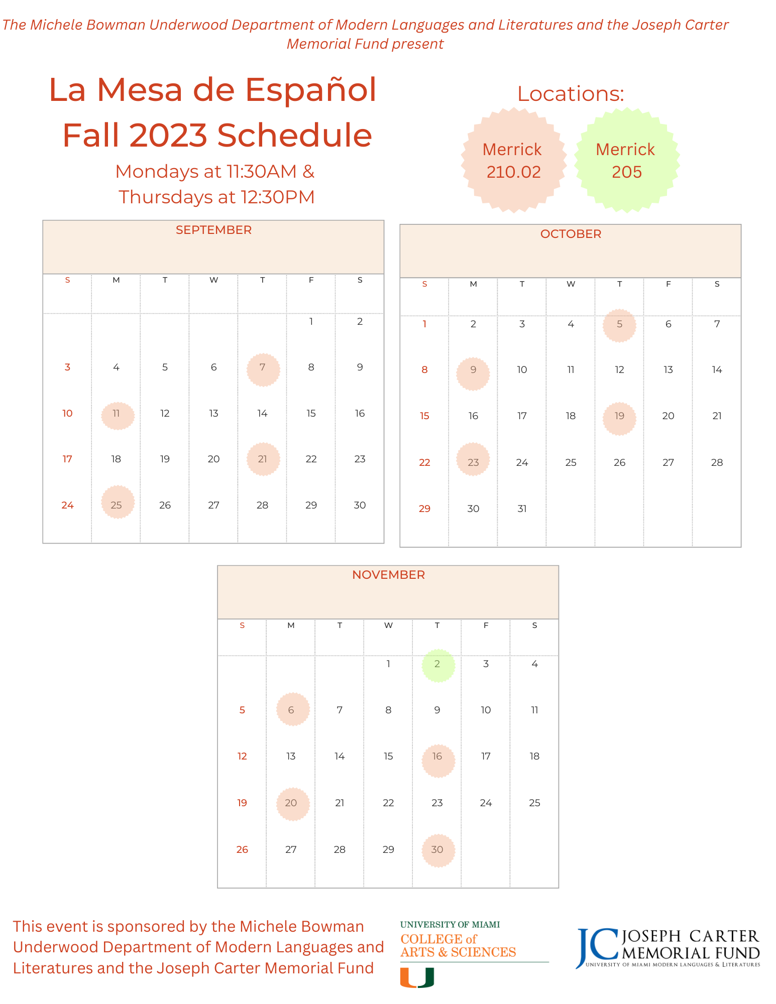 Monday, February 12th, 2:00-3:00 PM, Merrick 210.02